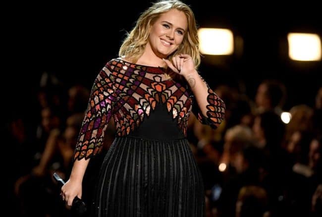 Певица появилась на закрытой вечеринке в облегающем платье от Ralph & Russo с пайетками, забрав волосы наверх, и дополнив образ массивными сережками. При этом, в девушке с трудом можно разглядеть Адель – настолько сильно она преобразилась.