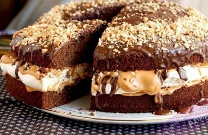 Если вы любите батончики «Сникерс», этот торт вам непременно понравится.