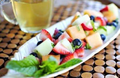 Этот необычный легкий фруктовый салат станет незаменимой закуской в жаркую летнюю пору.