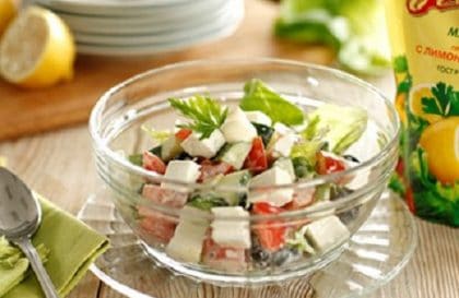 Традиционный греческий салат, приготовленный по-новому, раскроет вкус свежих овощей.