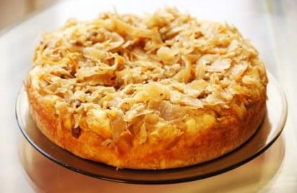 Простой рецепт очень вкусного заливного пирога, тесто для которого похоже на блинное.