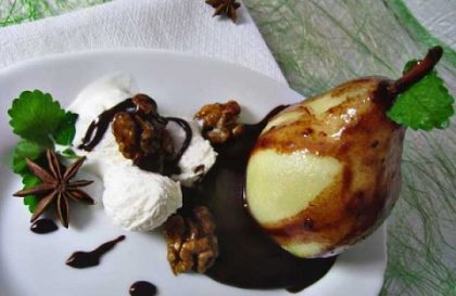 Груши в шоколаде – нежнейший десерт, который можно подать с мороженым.