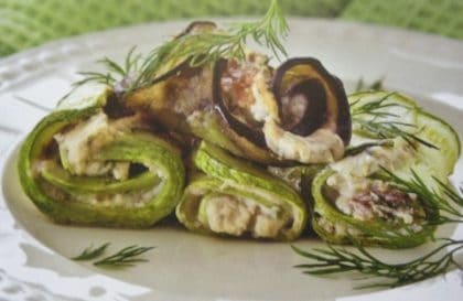 Овощные рулетики с начинкой из творожного сыра и зеленью.