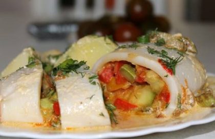 Кальмары, фаршированные овощами, под нежным грибным соусом – истинное наслаждение!