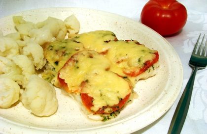 Очень сочная и нежная рыбка, запеченная с сыром и помидорами.
