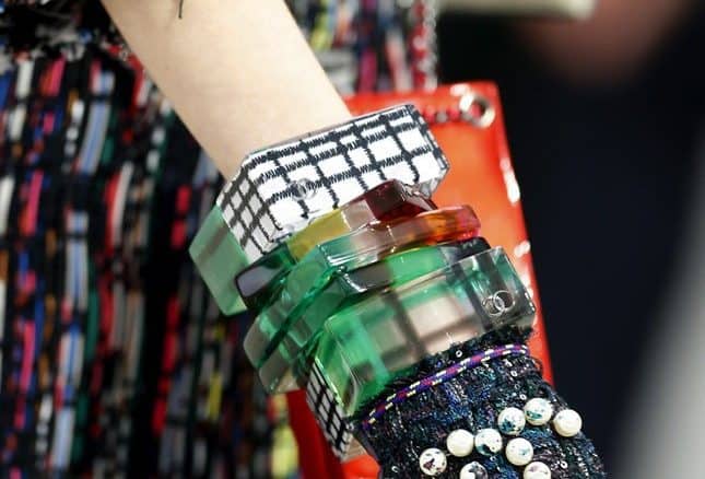 Коллекцию разбавляют стильные яркие браслеты с классическим узором Chanel.